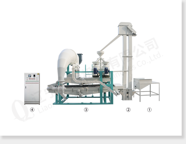 ① 上料斗② 斗式提升機 ③ 脫殼、風選、分選主機 ④ 電氣控制柜